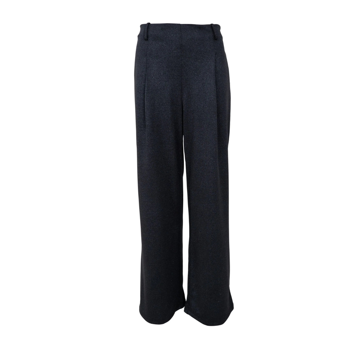 Cool glimmerbuks fra Black Colour. De har elastik bagpå i taljen, bæltestropper, skrålommer samt brede ben.