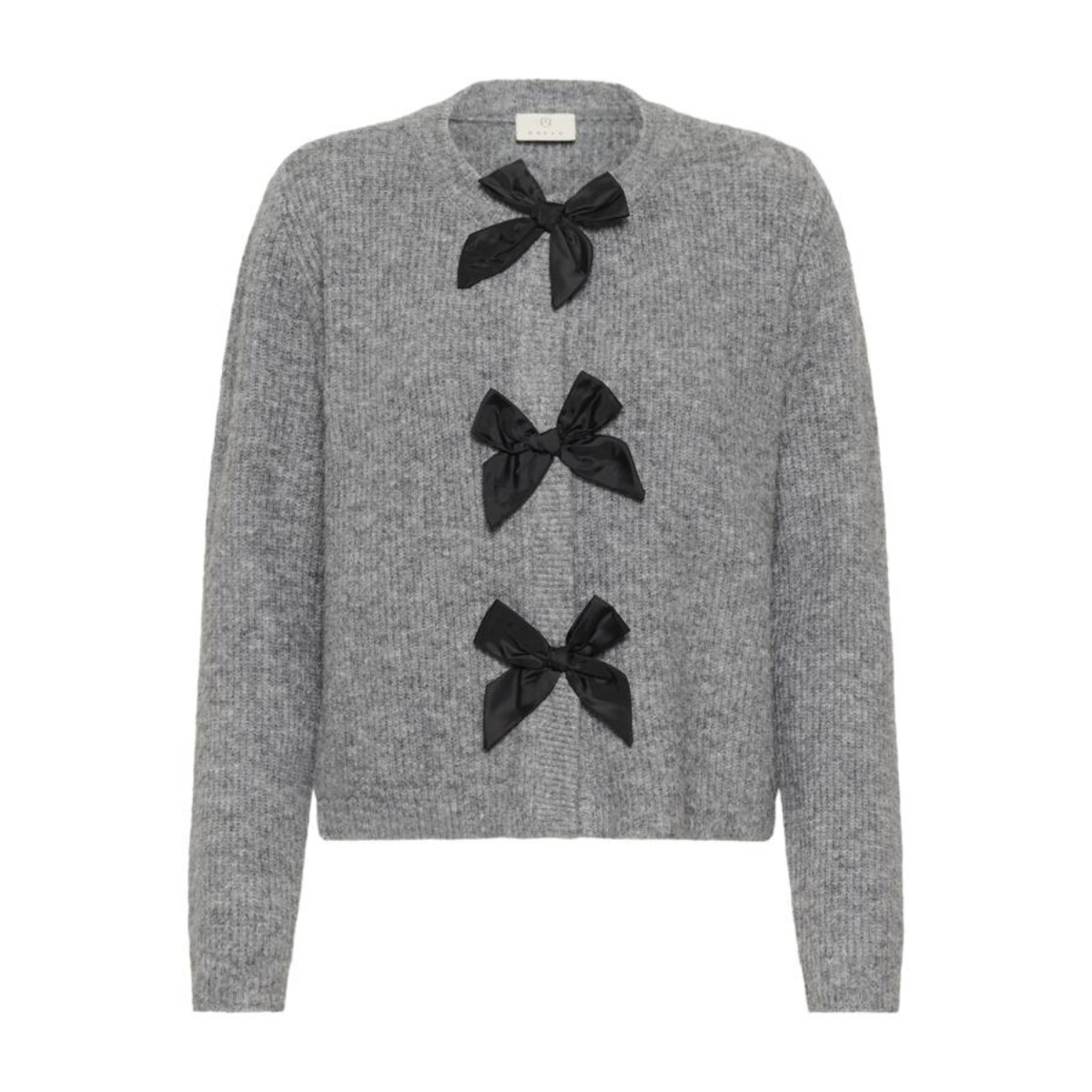 Smuk cardigan fra Kaffe. Cardiganen har en rund hals samt lange ærmer. Deruover har den fine sløjfer ved alle knaplukningerne.