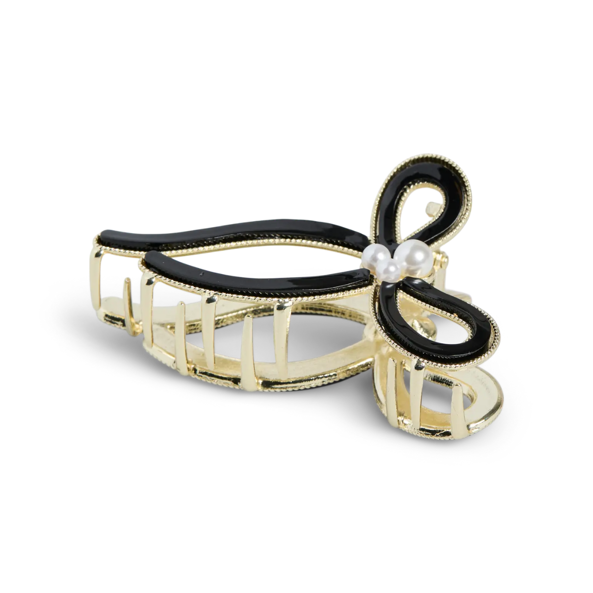 Smuk sløjfe hårklemme fra Pieces, med fine perle, sorte og guld detaljer.