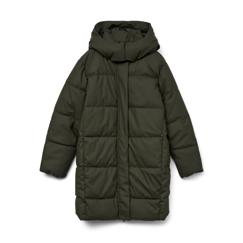 Dejlig stor jakke med høj hals, hætte samt lynlås og knaplukning. Jakken er vandafvisende og har lommer med lynlås.