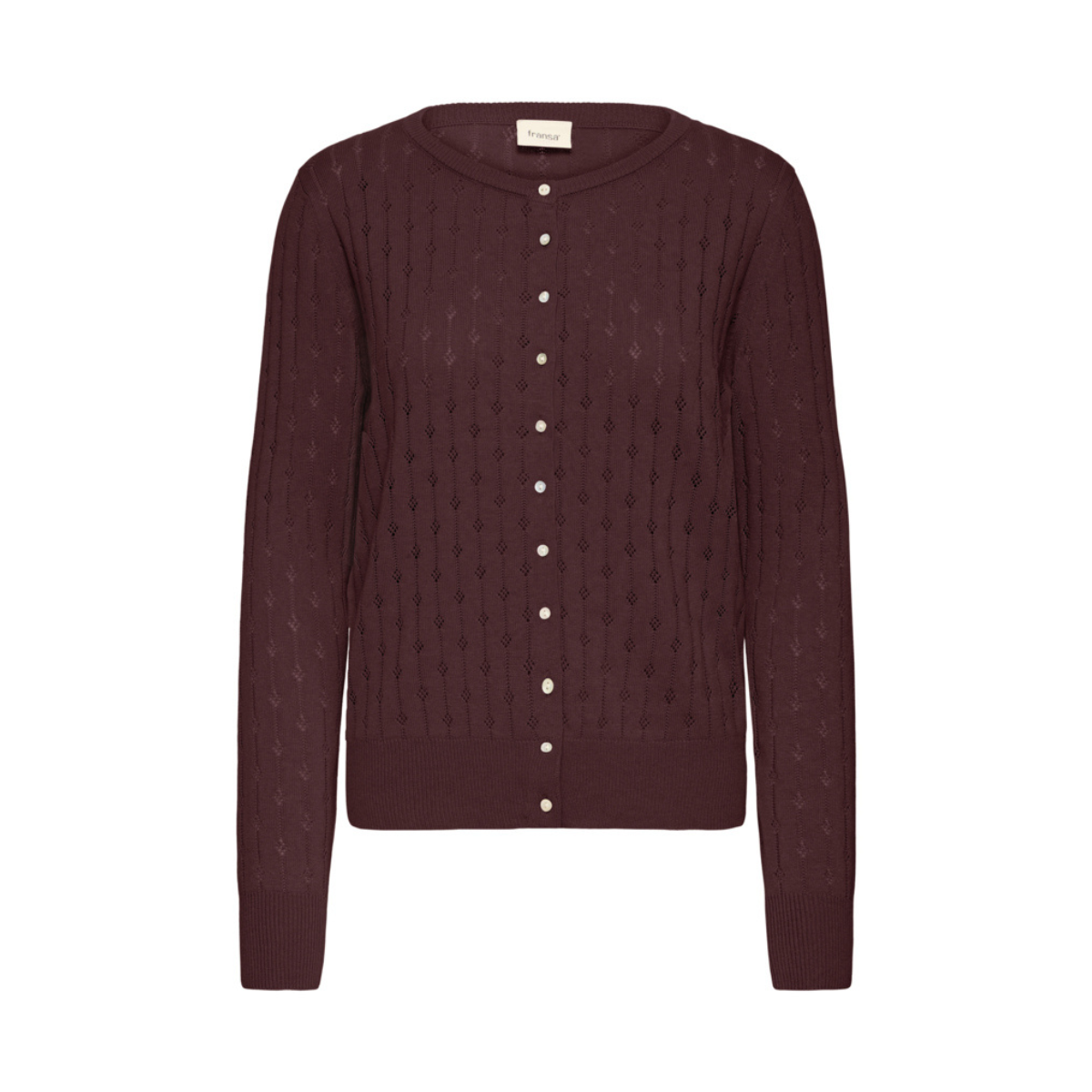 Sød cardigan fra Fransa der er gennemknappet, har lange ærmer samt et hulmønster fordelt på hele cardigan.