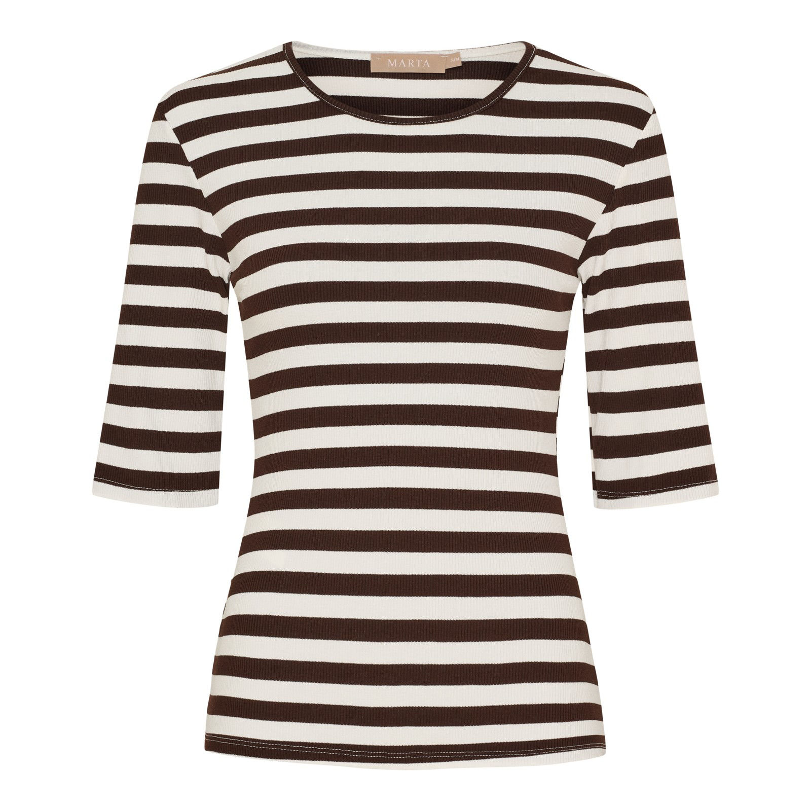Skøn stribet t-shirt fra Marta. T-shirten har en rund hals, 3/4 lange ærmer samt en tætsiddende pasform.