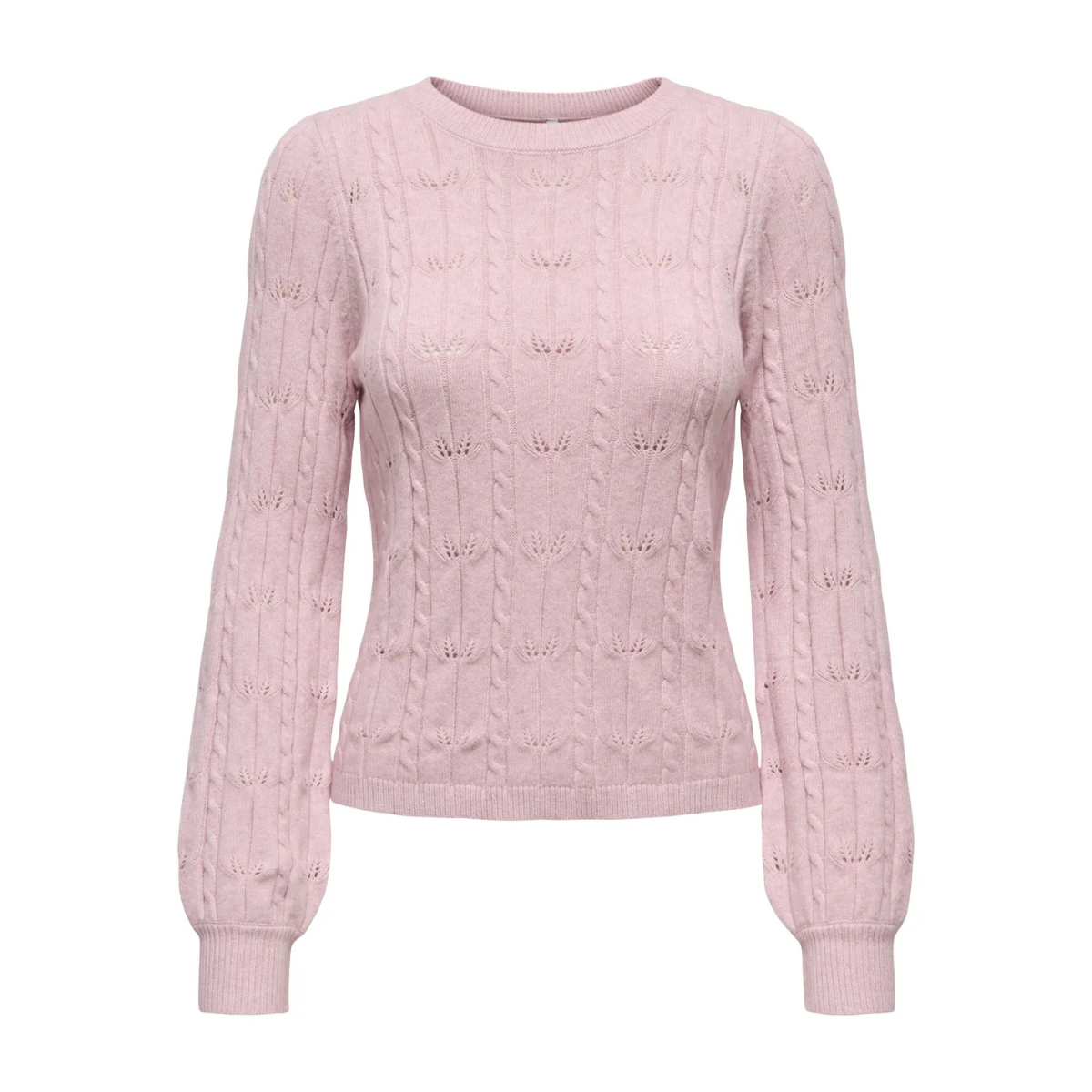Mega fin strik fra Only. Strikken har en rund hals, lange ærmer med en bred ribkant, en figursyet pasform med det fineste hulmønster.