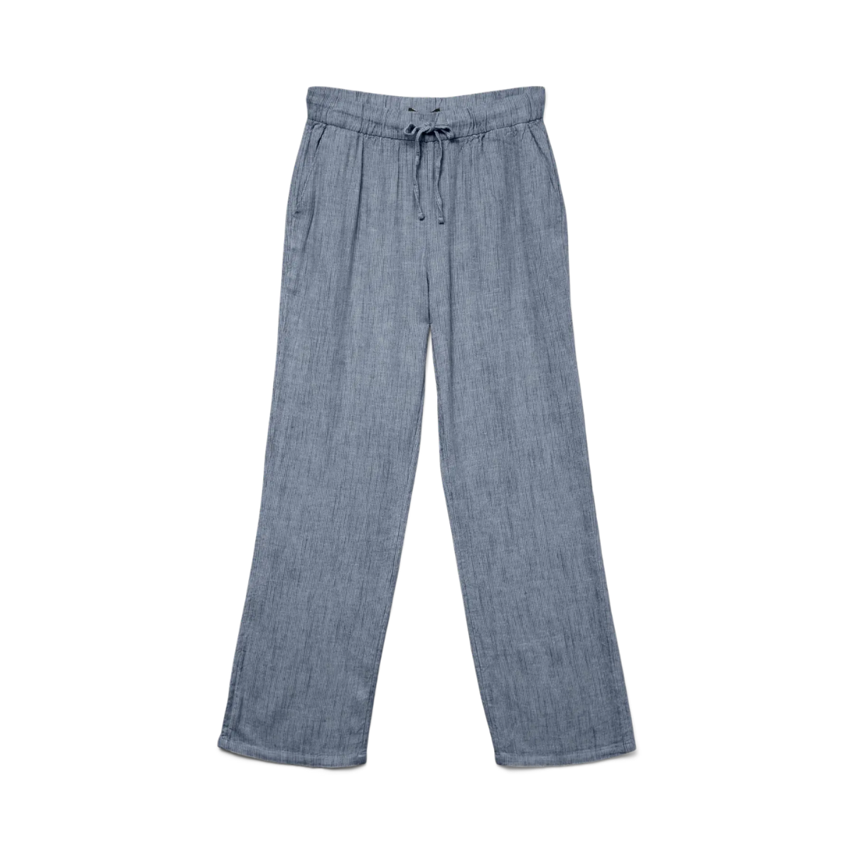 Cool stribet buks fra Vero Moda. De har brede ben, sidelommer og elastik samt bindebånd i taljen.